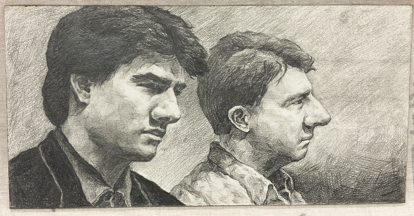 1학년 때 그린 영화 [레인 맨]의 두 배우. 더스틴 호프만과 톰 크루즈의 인물 특징을 강조해서 그리라는 숙제